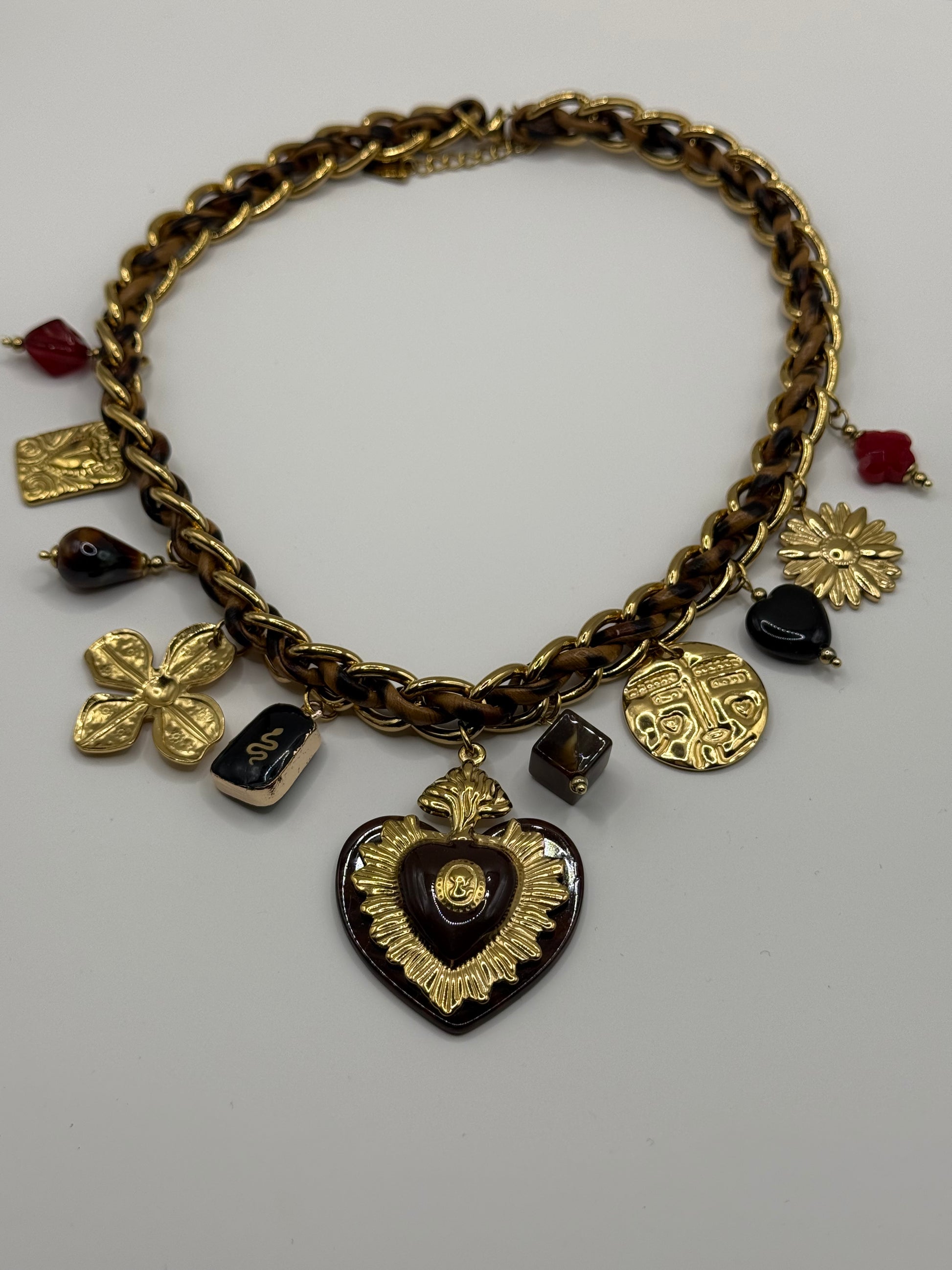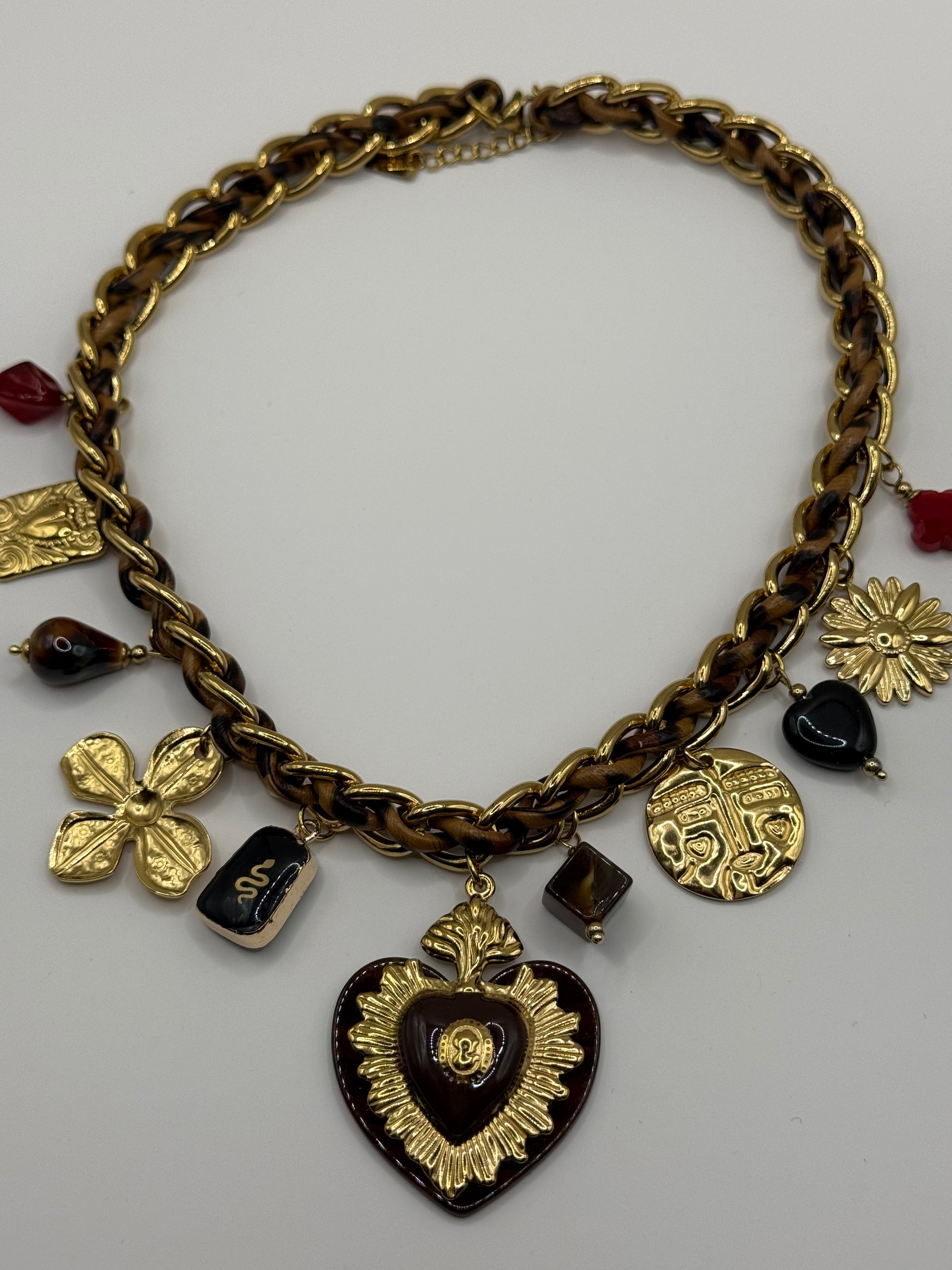 Coup de ♥️ pour ce magnifique collier en acier et sa touche de simili cuir , sublimé par ses breloques en acier et en acétate