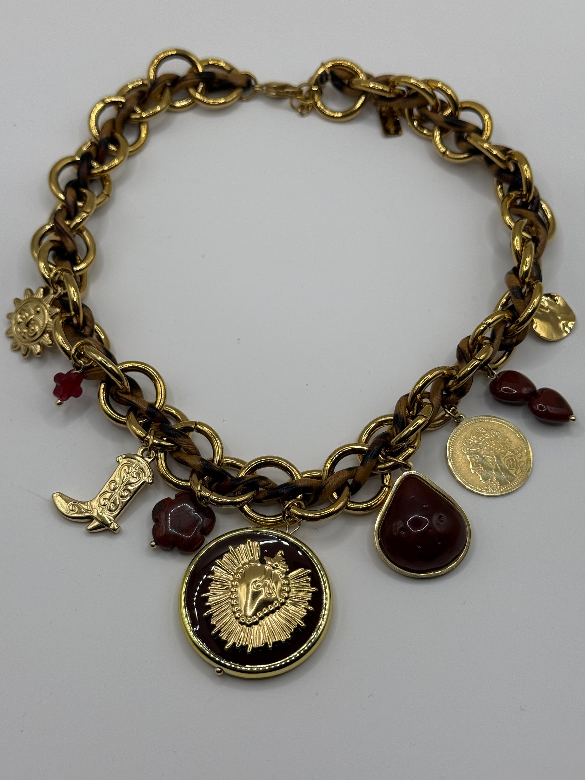 Coup de ♥️ pour ce magnifique collier en acier et sa touche de simili cuir Léopard , sublimé par ses breloques en acier et en acétate