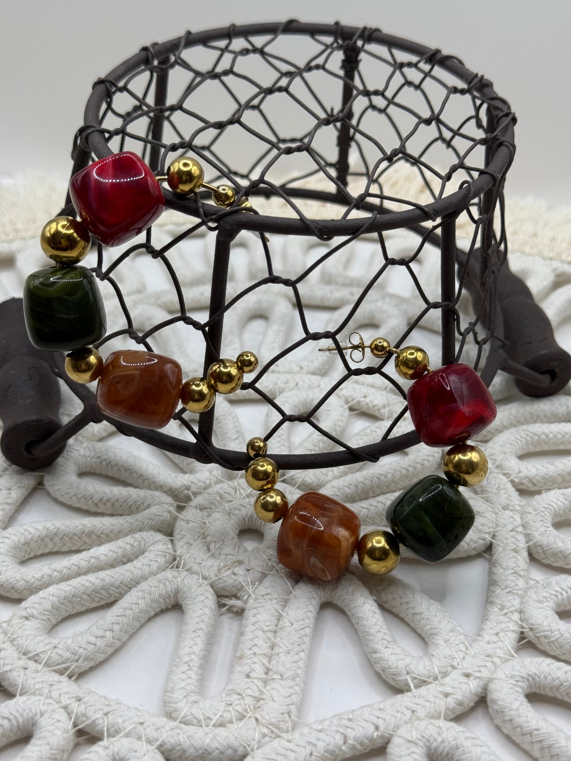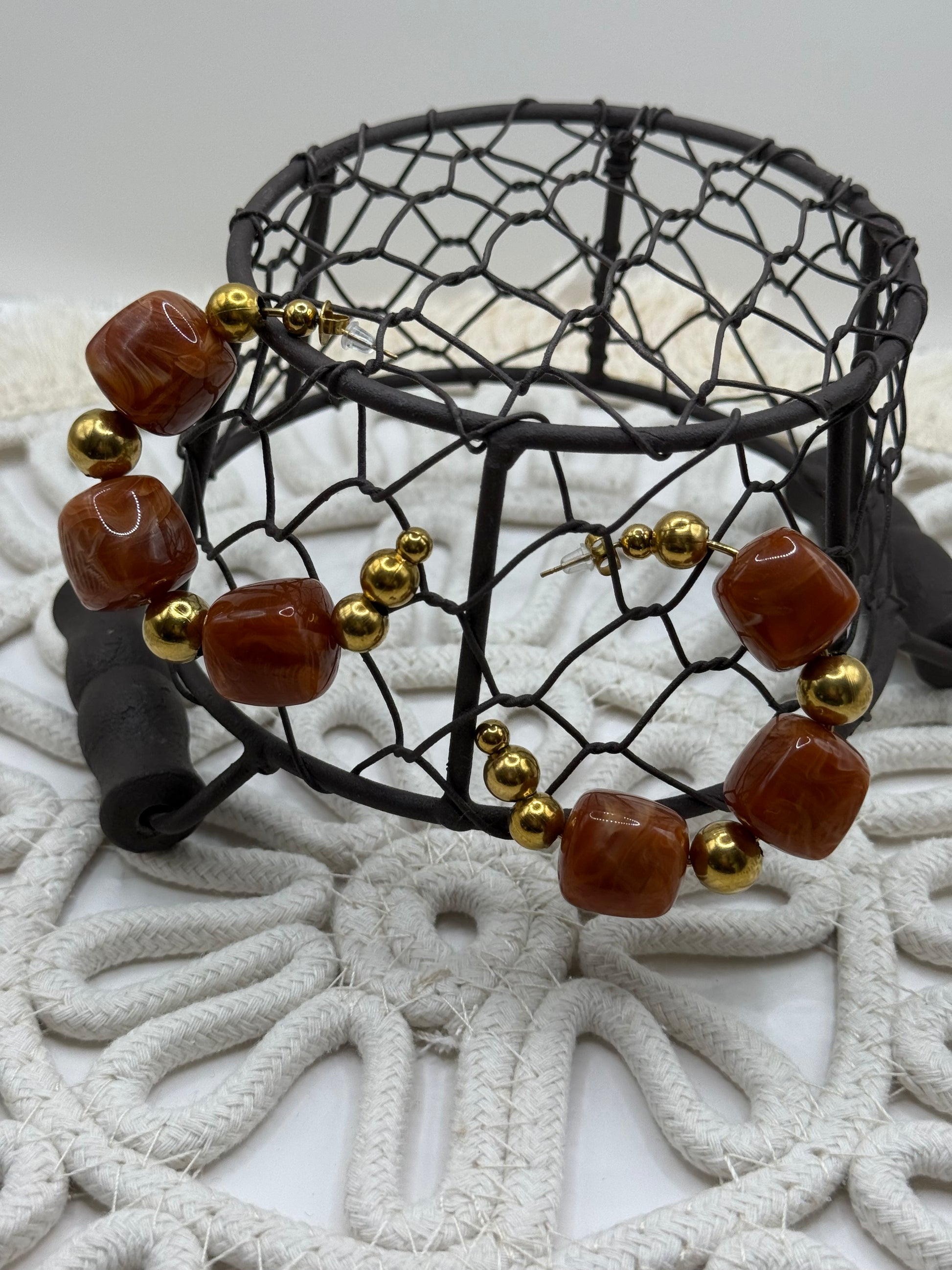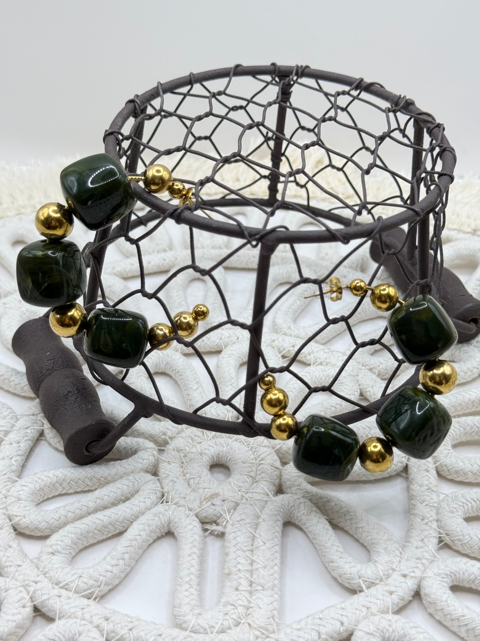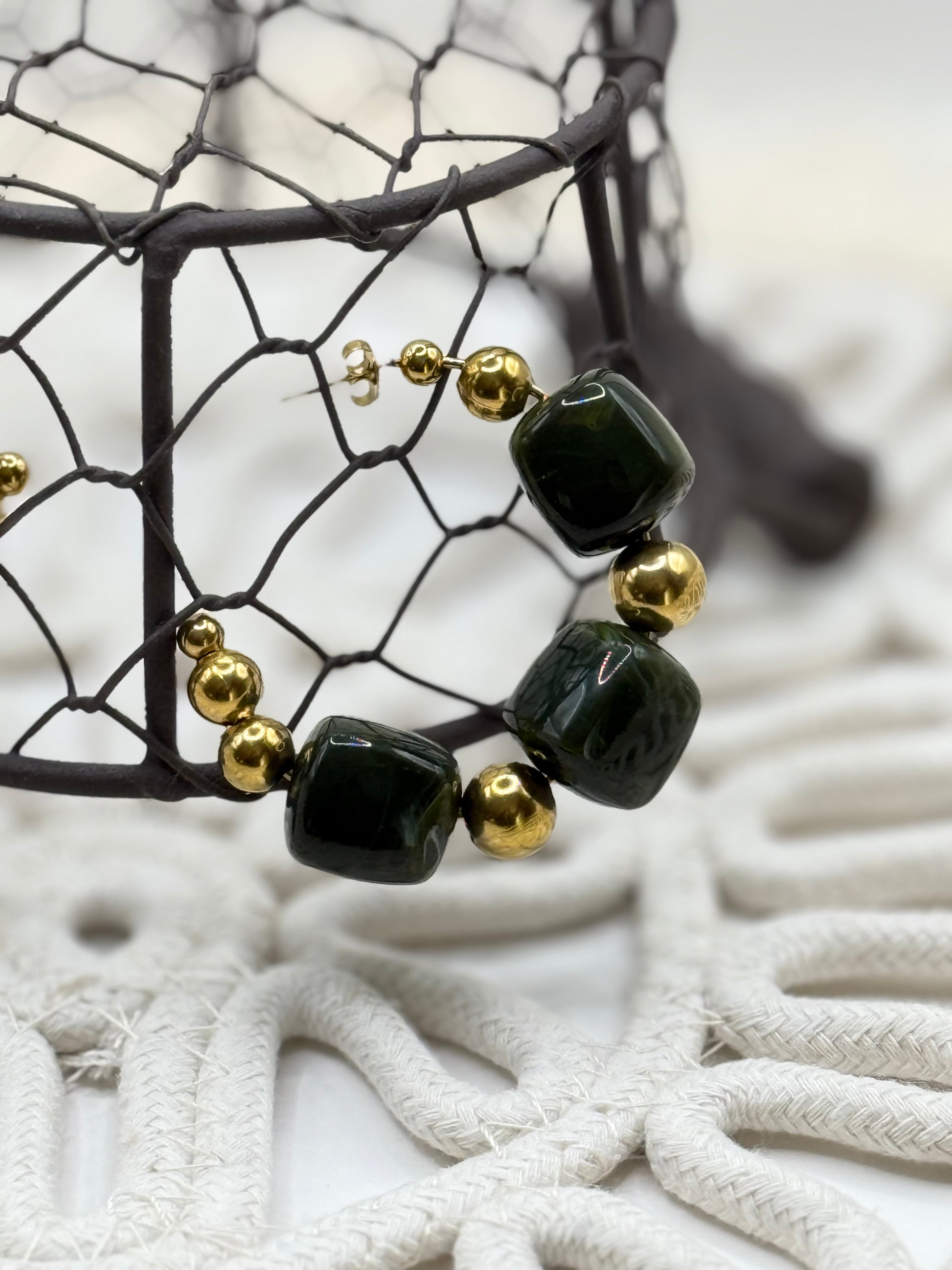 Anneau en acier avec ses perles carrées en acétate, et ses perles dorée 💕