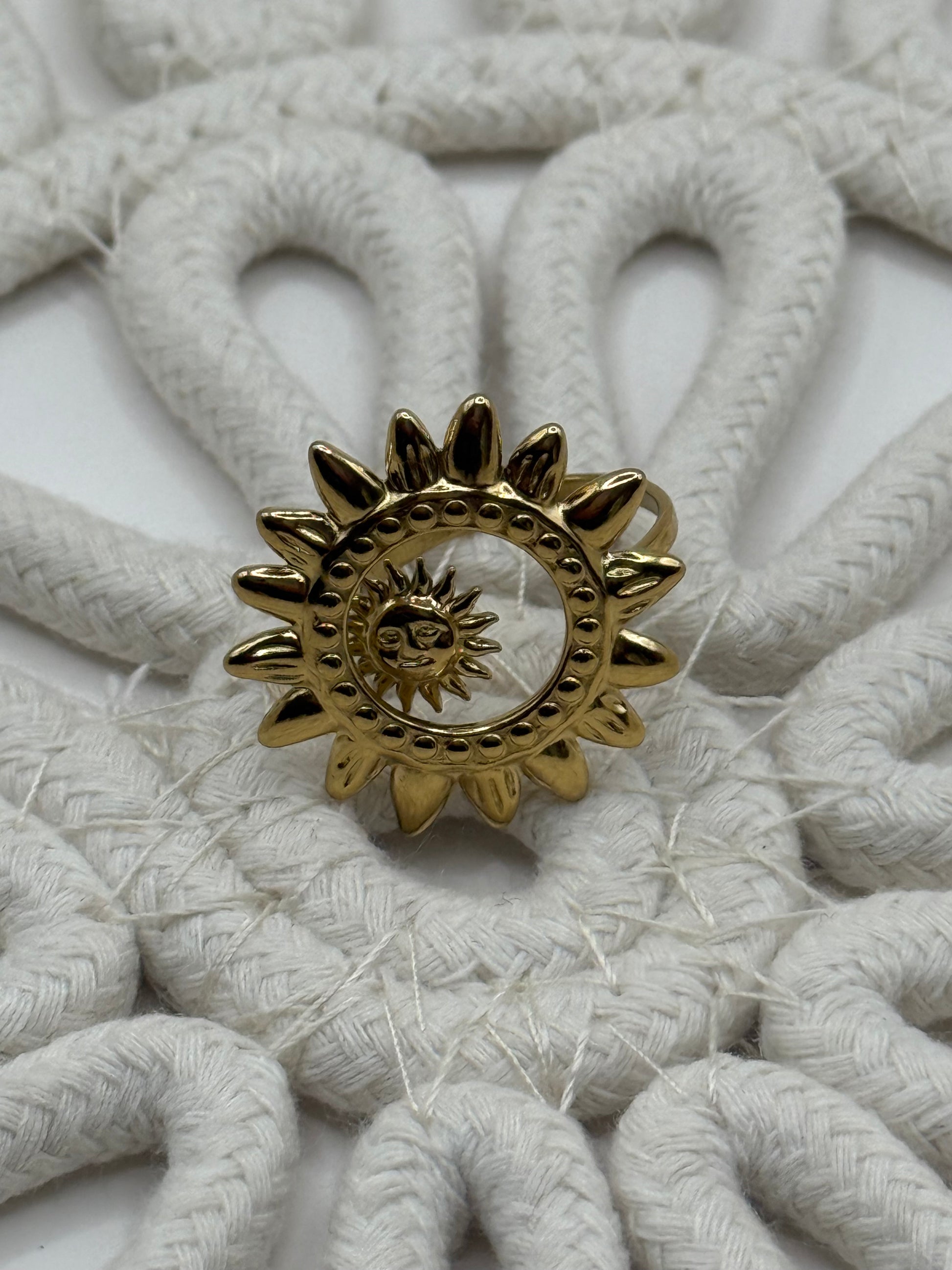 Bague avec 2 soleils ajustable en acier Inoxydable