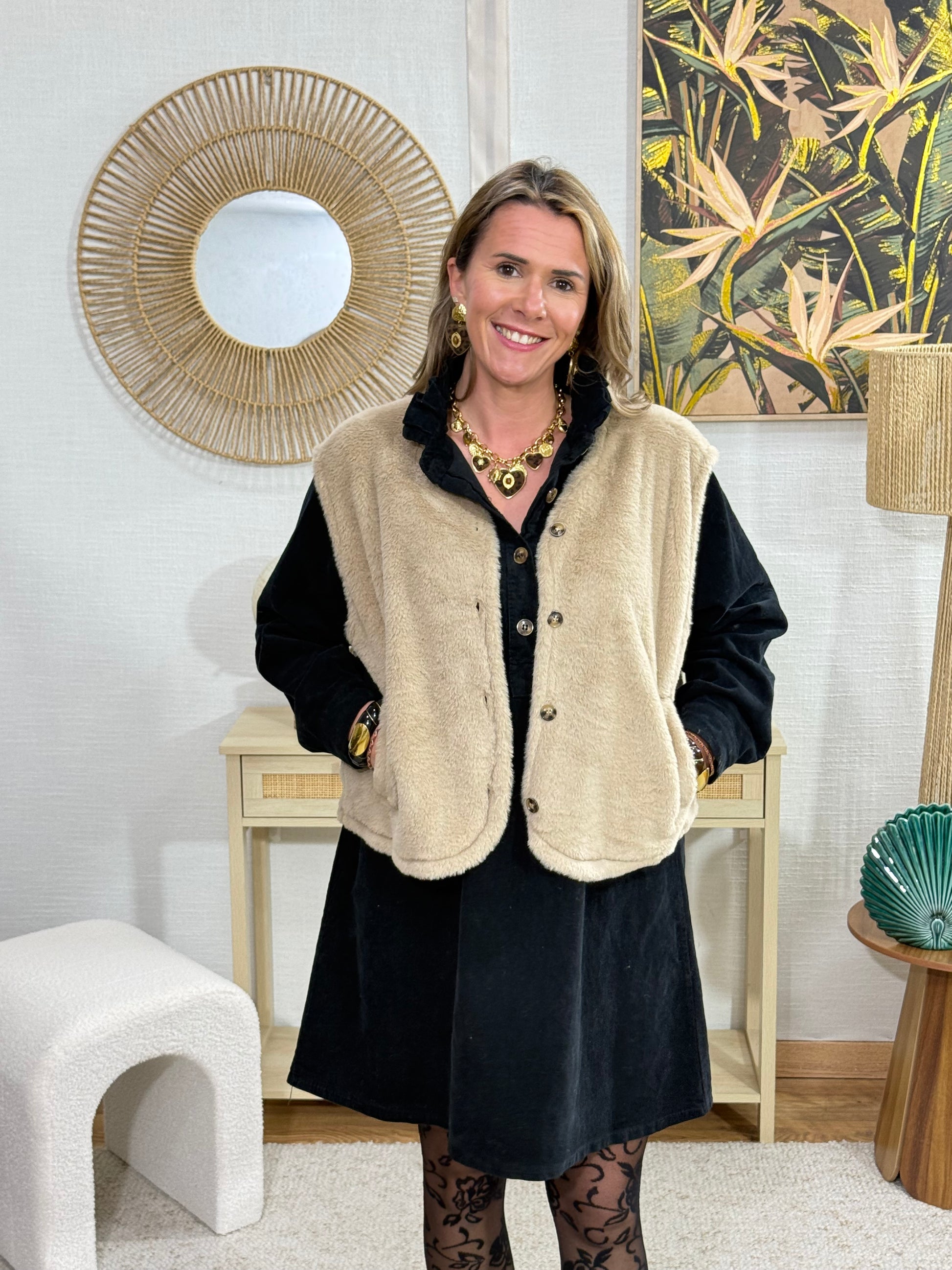 Offrez-vous un confort irréprochable avec ce gilet sans manche tout doux. Conçu pour apporter une chaleur légère et une douceur agréable, il est idéal pour superposer vos tenues sans encombrement.