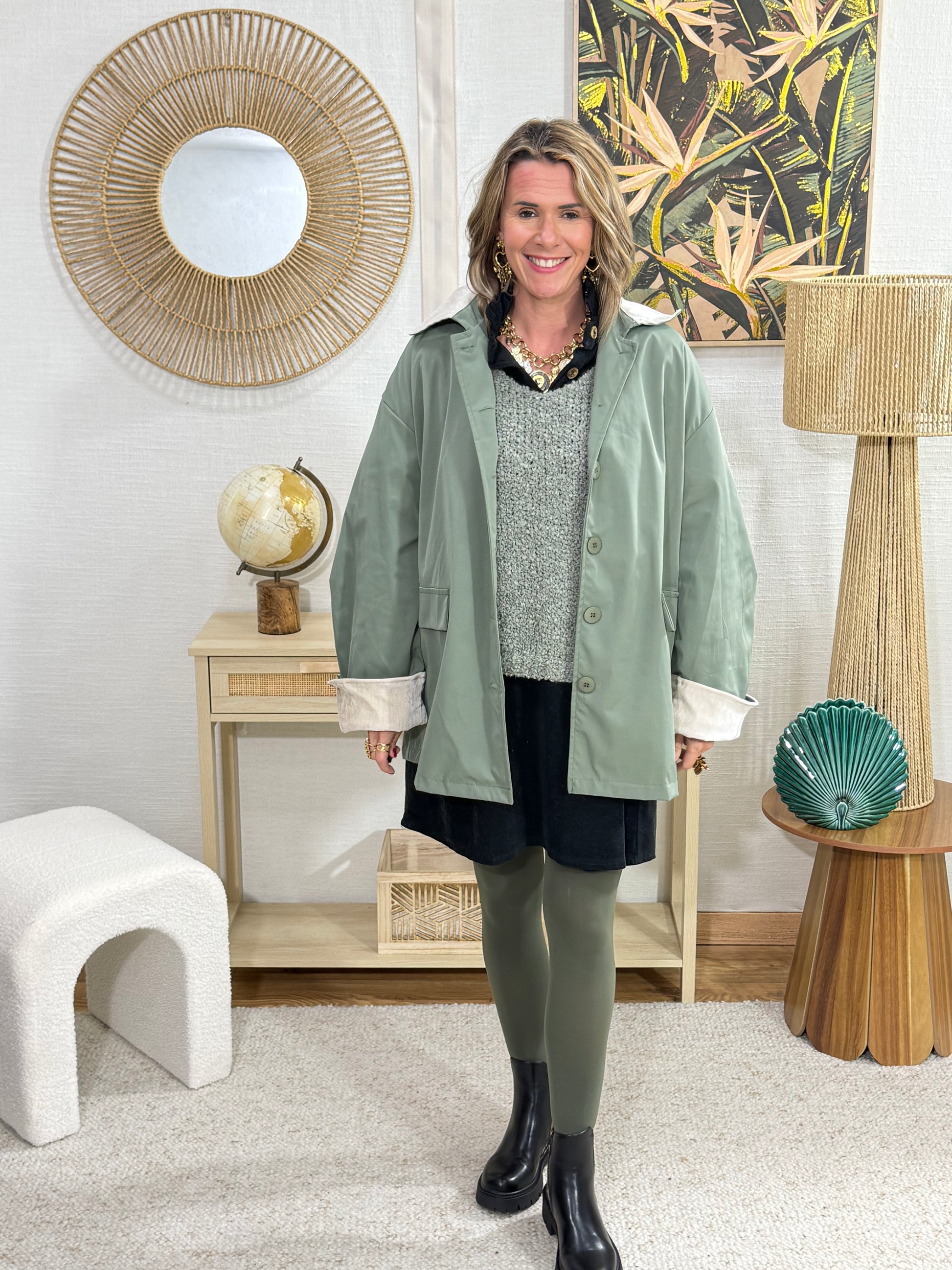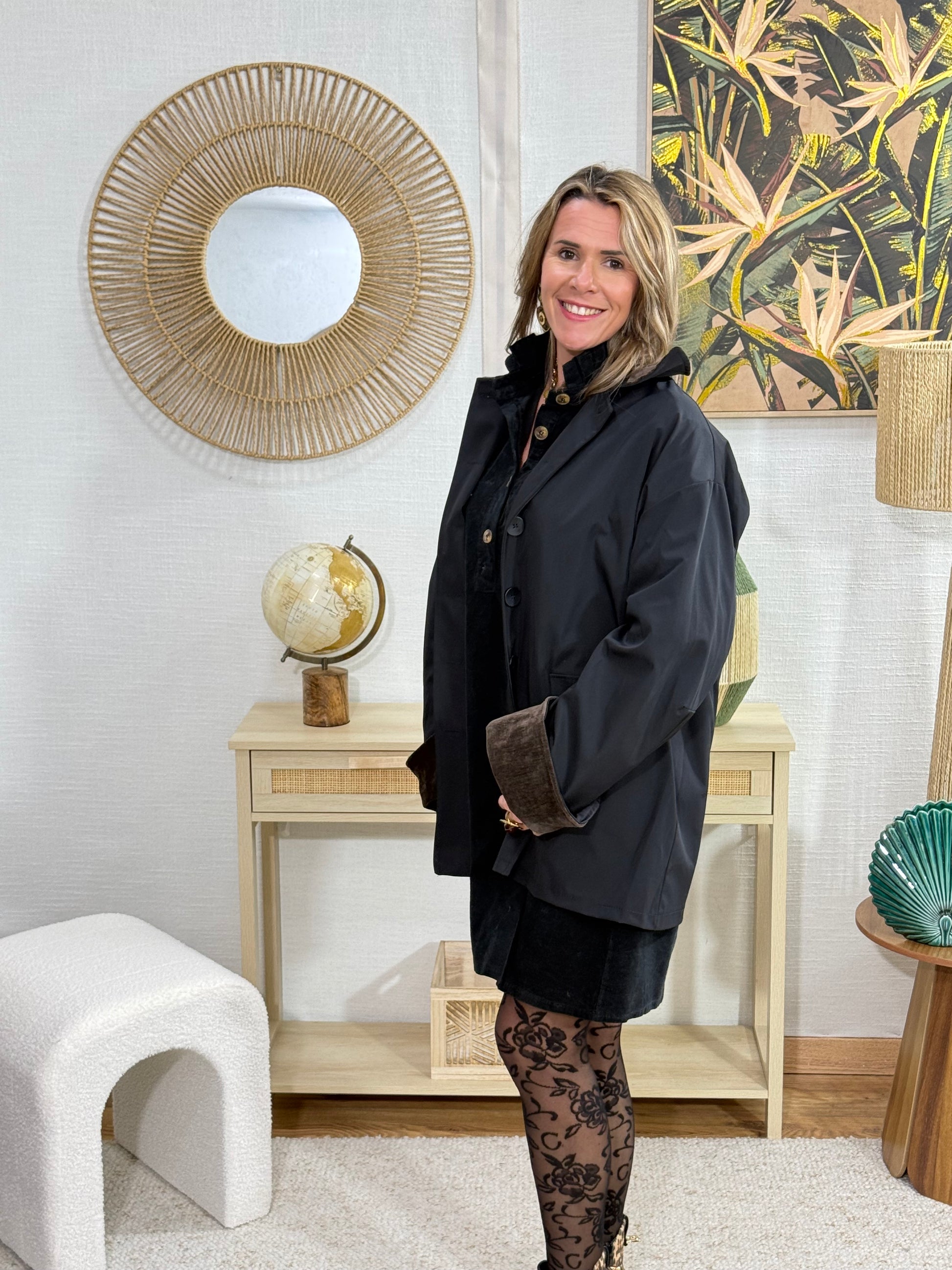 Le trench se distingue par son col et ses poignets en velours, apportant une touche d’élégance et de douceur à ce classique intemporel. Cette finition raffinée confère confort et sophistication, parfait pour varier les styles tout en restant chic lors des saisons plus humides et plus fraîches.