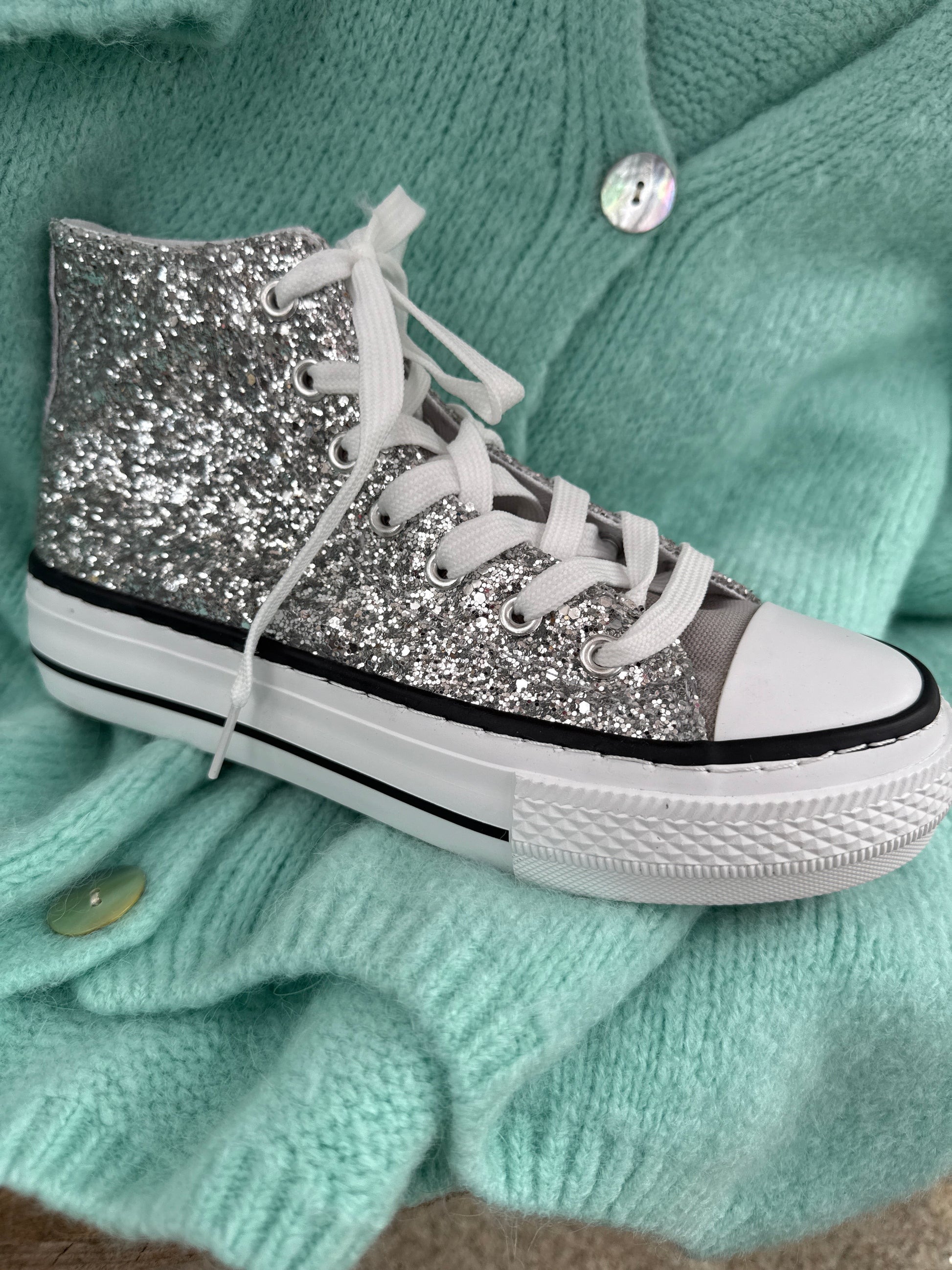 Baskets montantes à lacet pailletées.